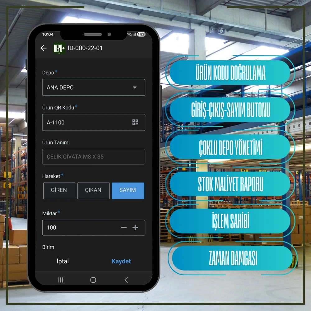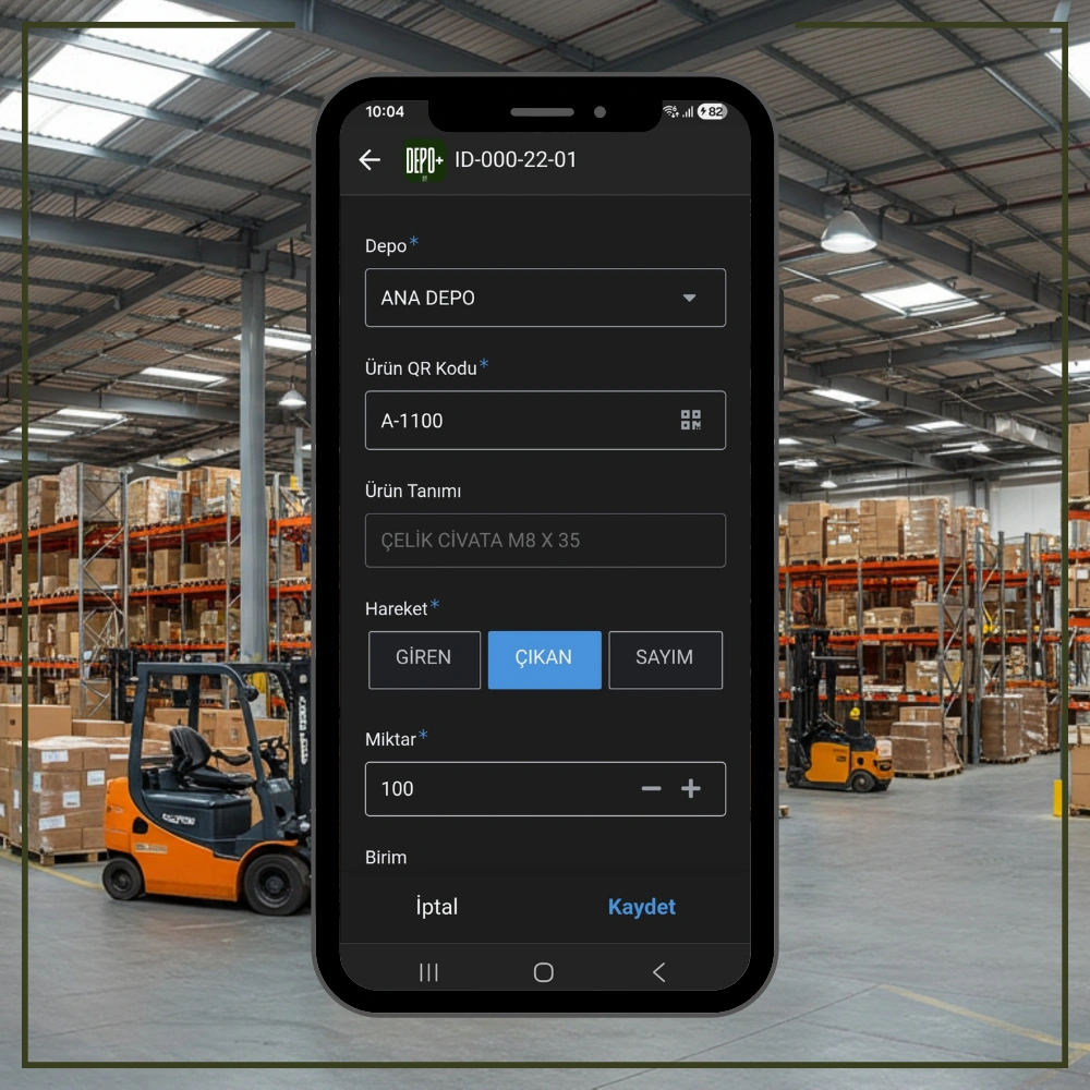• App üzerinden depolara Giriş ve Çıkış işlemlerinin online olarak yapılması.