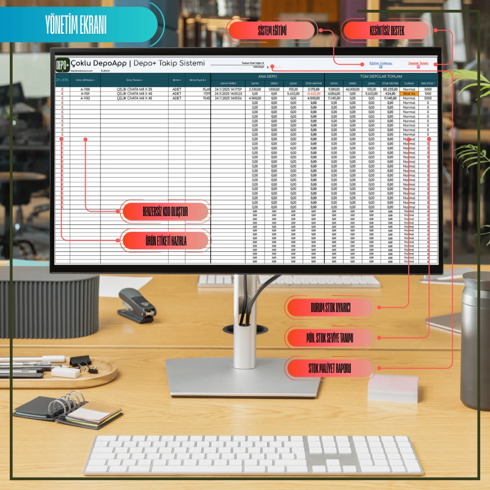 • Hatalı stoklar kaynaklı hem satın alma süreçleri, hem de üretim süreçleri olumsuz şekilde etkilenmektedir. DepoApp+ sayesinde stoklarınızı kolay şekilde yönetebilir ve stok yönetim kararlarınızı etkin şekilde verebilirsiniz.